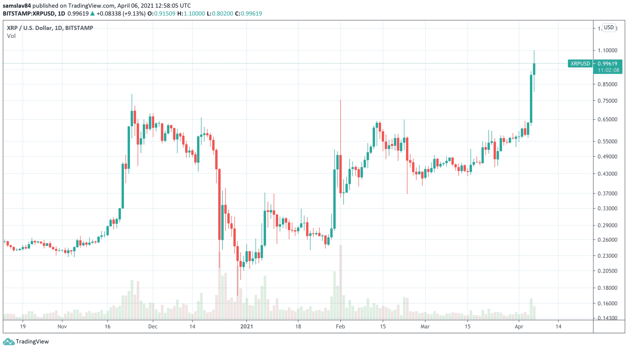XRP dnes překonalo hodnotu jednoho dolaru, za týden vytvořilo zisk 70 % a probojovalo se na čtvrtou příčku v tržní kapitalizaci. Po delší době tak předběhlo stablecoin Tether (USDT). U XRP jsou vertikální pohyby úplná klasika. Tento coin nikdy nestoupá normálně. Drtivou většinu mincí má v rukou jeden hráč, který manipuluje s cenou.