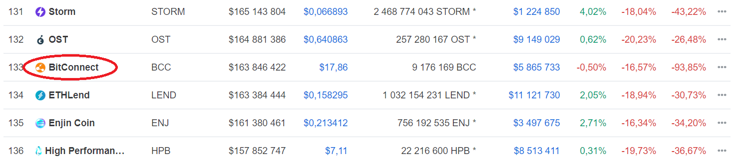 Ten den nastal přesně před dvěma roky, kdy Bitconnect zničehonic padl z 300 $ na téměř nulu. Následovalo ukončení veřejné obchodovatelnosti akcií z většiny směnáren. BCC se pak pokusil o poslední malý skok a za pár dní už skončil na smetišti dějin.